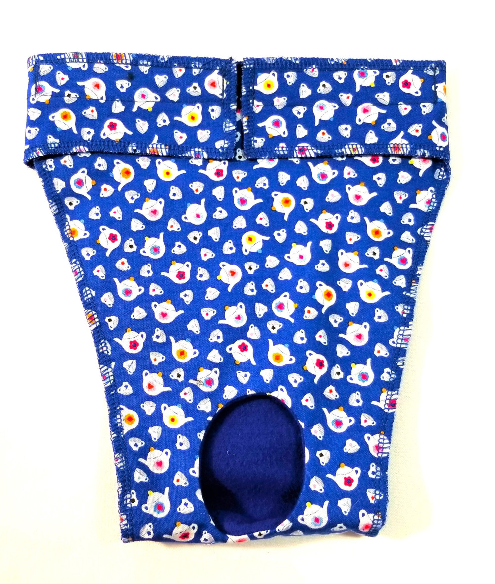The outer fabric is either cotton or flannel. The fabric next to your girl is flannel for comfort and absorbency. Each pair is carefully constructed with two additional layers of absorbent flannel under the tail plus a final section of waterproof diaper fabric to minimize leaks. These panties can be used with or without a pad.